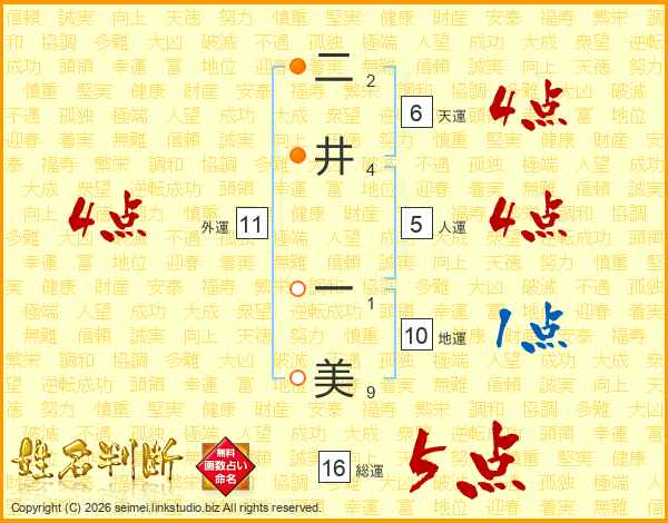 二井一美さんの外運は11画の4点!