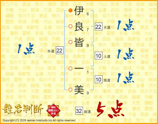 伊良皆一美さんの総運は32画の5点!