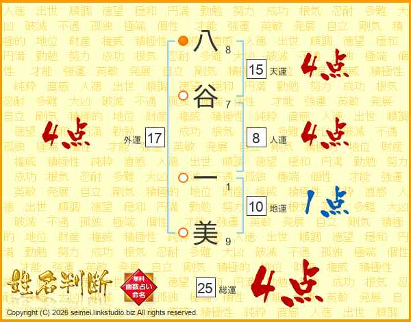 八谷一美さんの総運は25画の4点!
