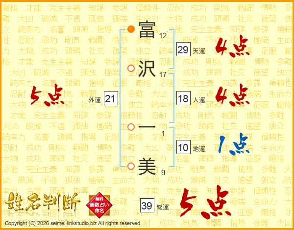 富沢一美さんの総運は39画の5点!