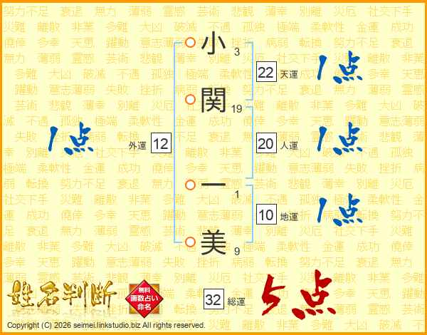 小関一美さんの総運は32画の5点!