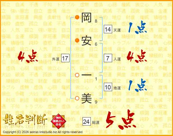 岡安一美さんの外運は17画の4点!