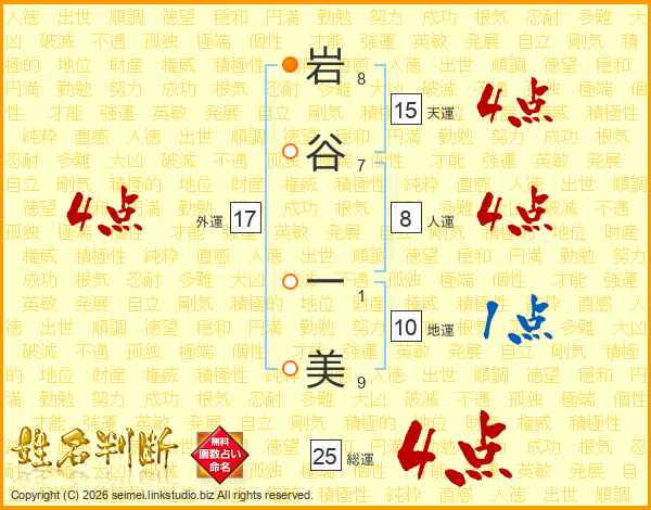 岩谷一美さんの天運は15画の4点!