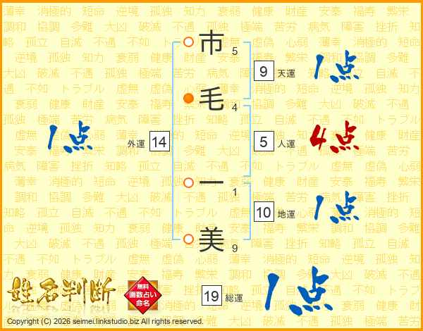 市毛一美さんの総運は19画の1点!