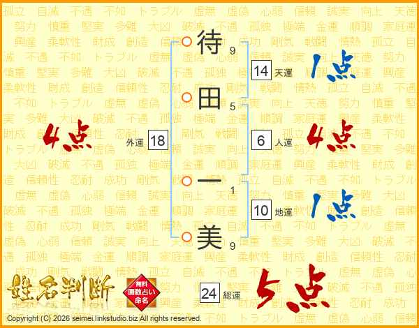 待田一美さんの総運は24画の5点!