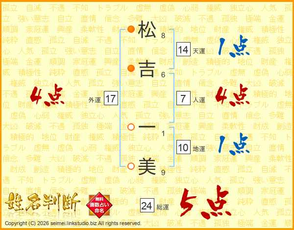 松吉一美さんの天運は14画の1点!