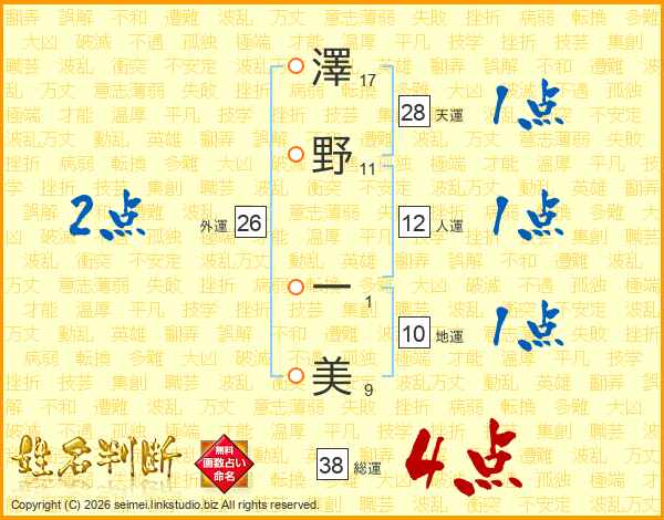 澤野一美さんの総運は38画の4点!