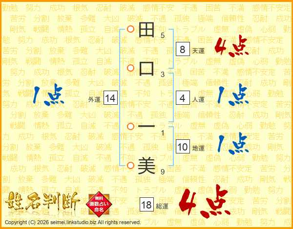 田口一美さんの総運は18画の4点!