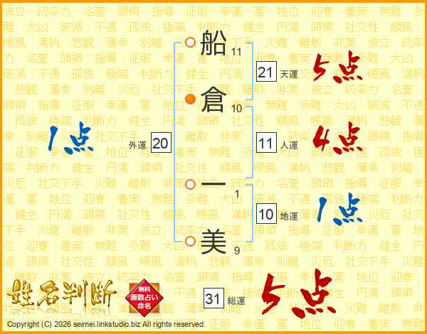 船倉一美さんの総運は31画の5点!