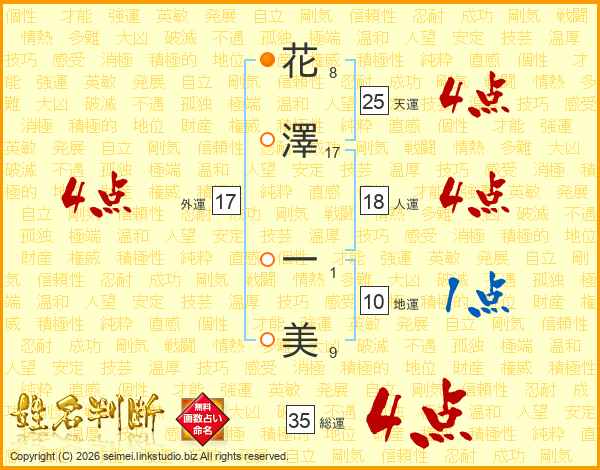 花澤一美さんの外運は17画の4点!