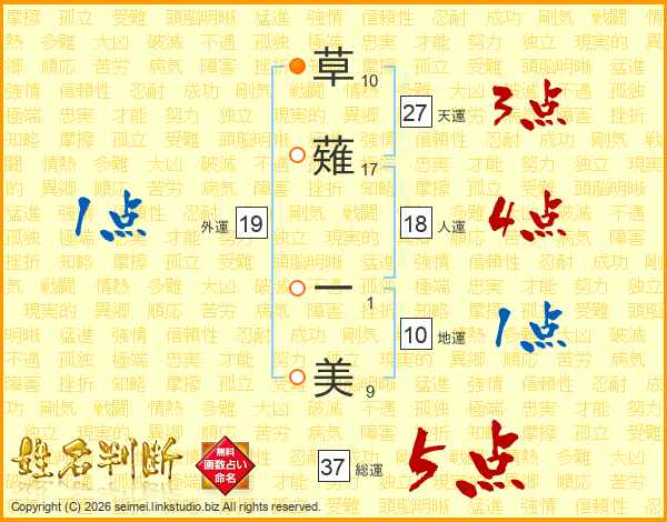 草薙一美さんの総運は37画の5点!