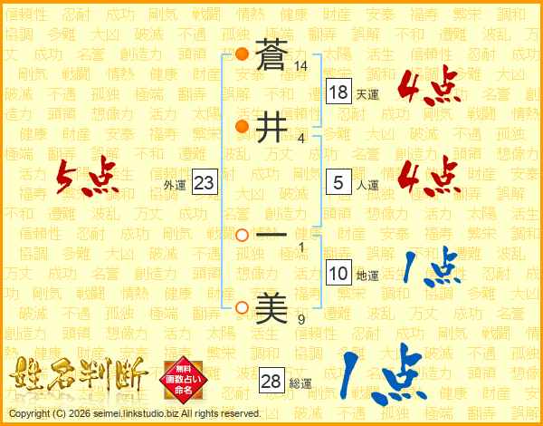 蒼(14画)井(4画) 一(1画)美(9画)