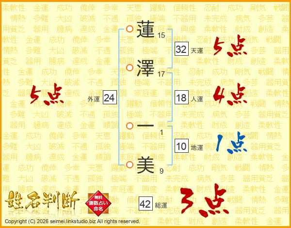 蓮澤一美さんの外運は24画の5点!