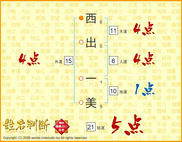 西出一美さんの総運は21画の5点!