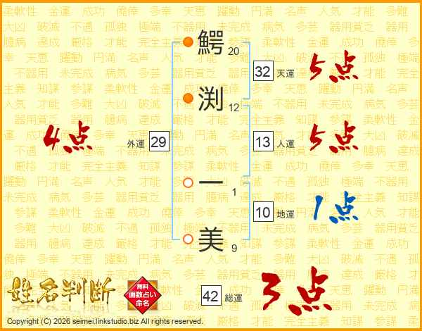 鰐渕一美さんの天運は32画の5点!