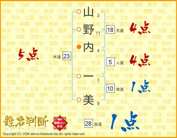 山野内一美さんの総運は28画の1点!