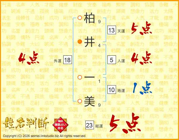 柏井一美さんの総運は23画の5点!