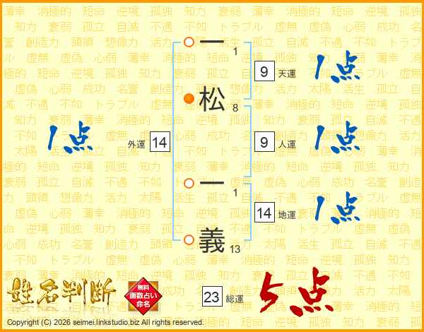 一松一義さんの総運は23画の5点!