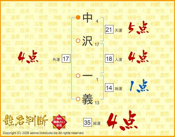 中沢一義さんの総運は35画の4点!