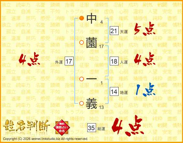 中薗一義さんの天運は21画の5点!