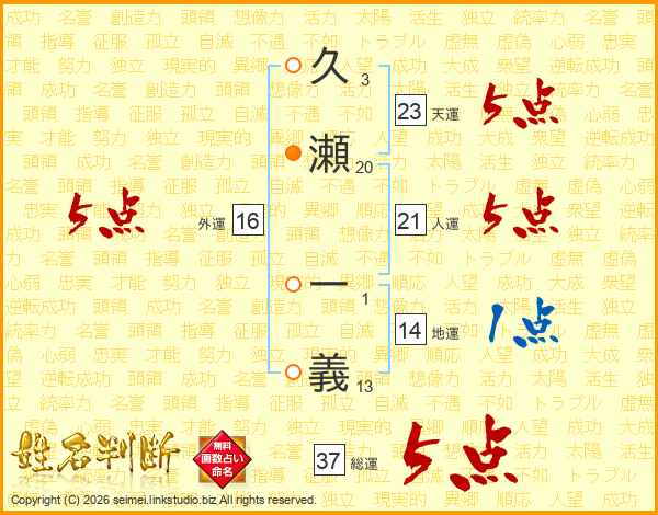久瀬一義さんの天運は23画の5点!