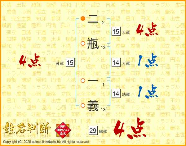 二瓶一義さんの総運は29画の4点!