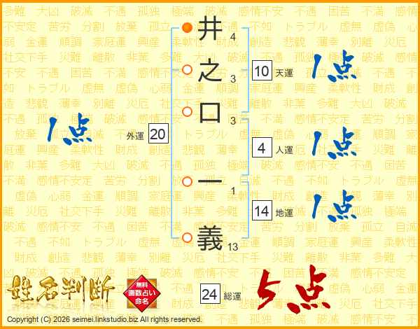 井之口一義さんの総運は24画の5点!
