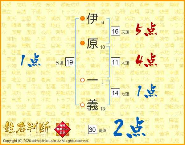 伊原一義さんの総運は30画の2点!
