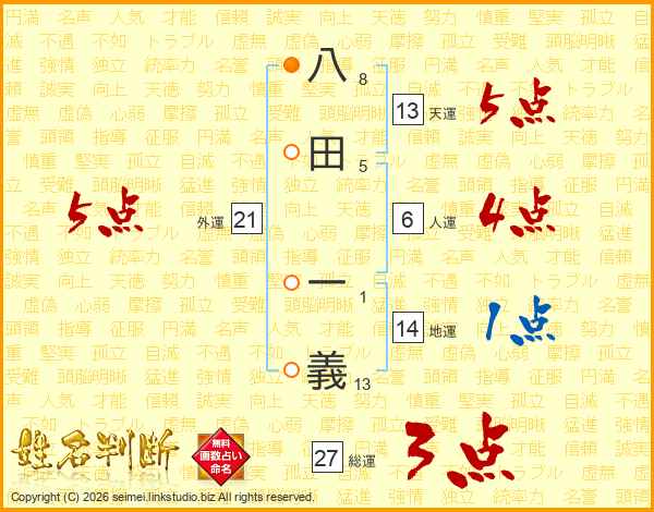 八田一義さんの天運は13画の5点!