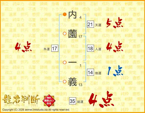 内薗一義さんの総運は35画の4点!