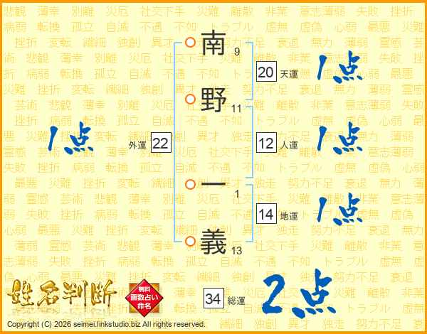 南野一義さんの人運は12画の1点!