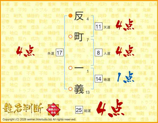反町一義さんの天運は11画の4点!