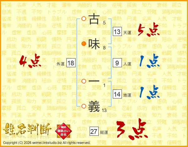古味一義さんの天運は13画の5点!