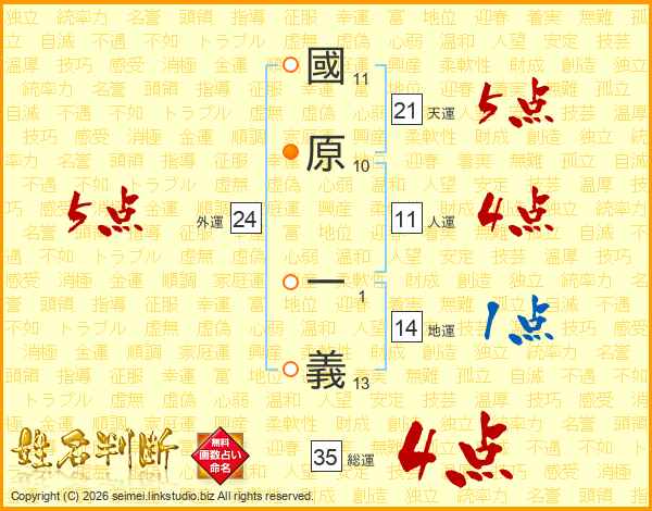 國原一義さんの天運は21画の5点!