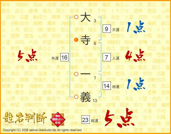 大寺一義さんの総運は23画の5点!