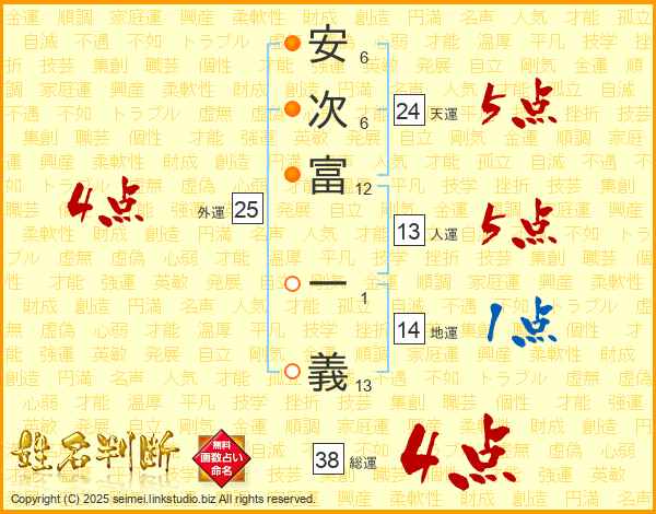 安(6画)次(6画)富(12画) 一(1画)義(13画)