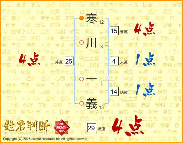寒川一義さんの天運は15画の4点!