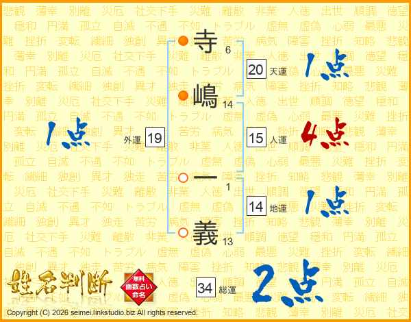 寺(6画)嶋(14画) 一(1画)義(13画)