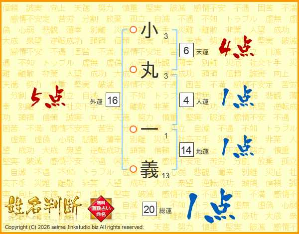 小丸一義さんの総運は20画の1点!