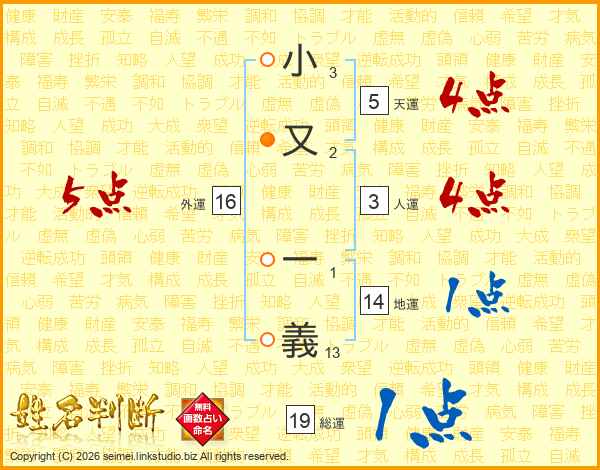 小又一義さんの天運は5画の4点!