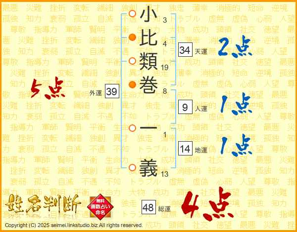 小(3画)比(4画)類(19画)巻(8画) 一(1画)義(13画)