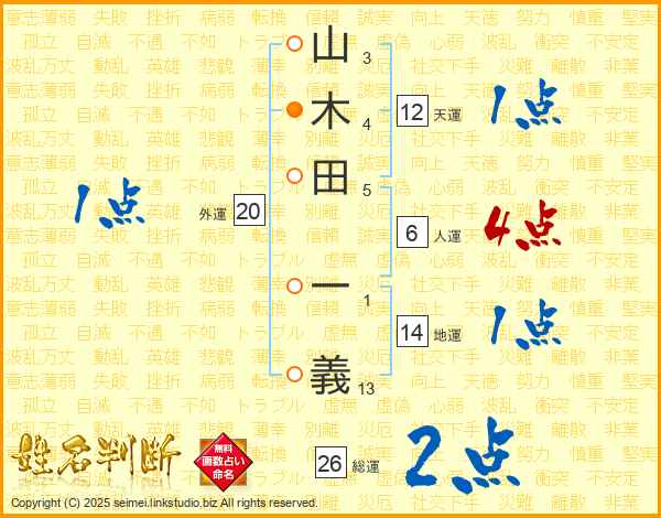 山(3画)木(4画)田(5画) 一(1画)義(13画)