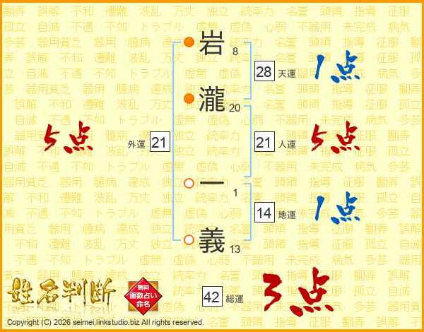 岩瀧一義さんの人運は21画の5点!