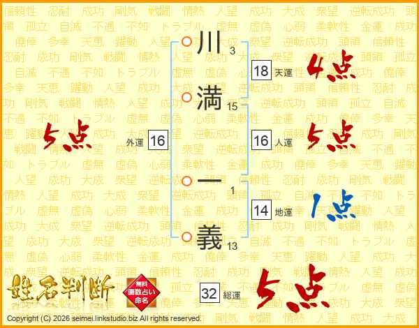 川満一義さんの総運は32画の5点!