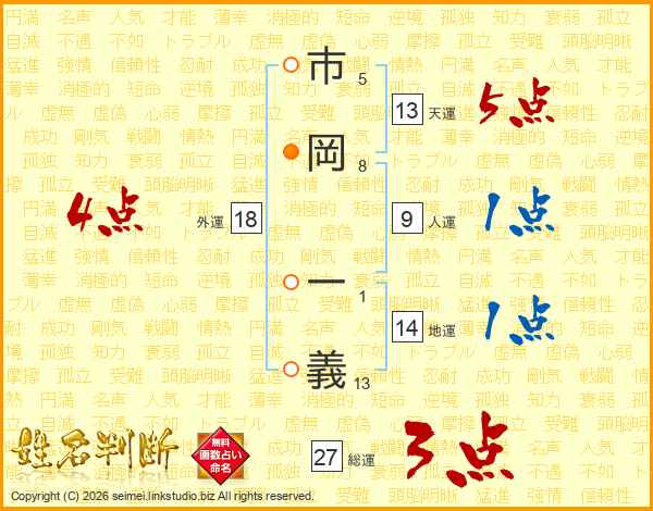 市岡一義さんの地運は14画の1点!