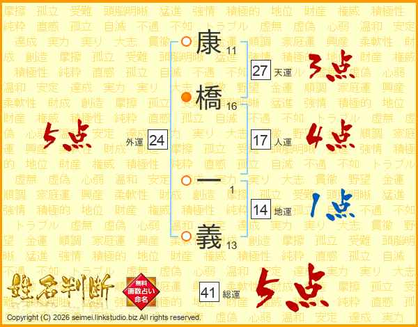 康橋一義さんの総運は41画の5点!