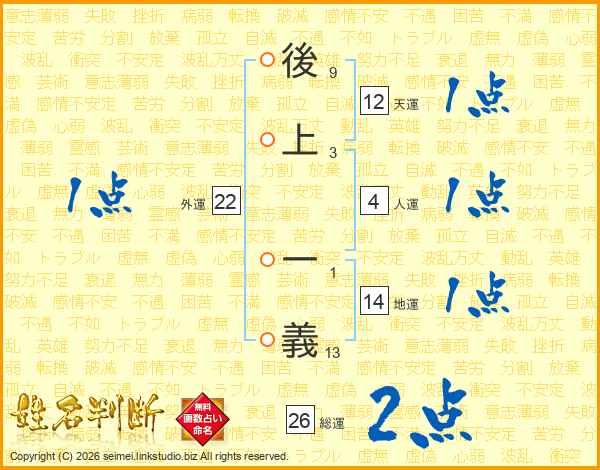 後上一義さんの地運は14画の1点!