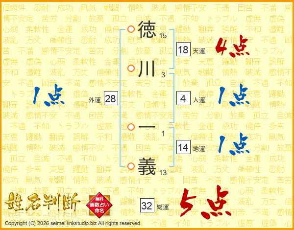 徳川一義さんの総運は32画の5点!