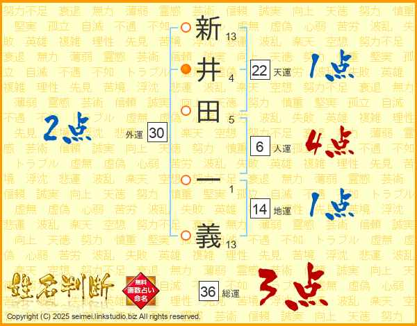 新(13画)井(4画)田(5画) 一(1画)義(13画)