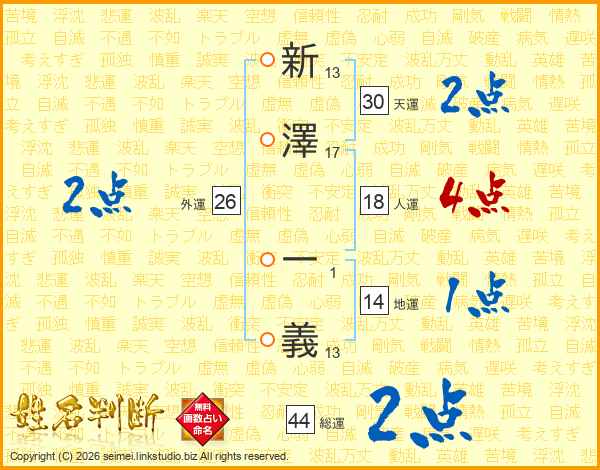 新澤一義さんの天運は30画の2点!